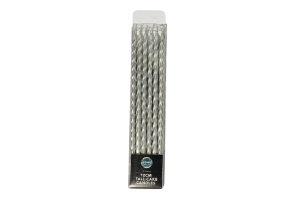12pc 12cm Tall Silver Spiral Candles Iconic Cake Art