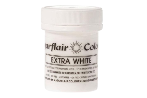 Sugarflair Spectral Paste Colour Extra White is a highly concentrated paste suitable for colouring fondant, buttercream, royal icing, cake mixes and much more. Sugarflair colours are produced in the UK and are the highest grade on the market. Sugarflair Spectral Paste Colour can be diluted using Decorator’s Alcohol or Rose Spirit for painting.