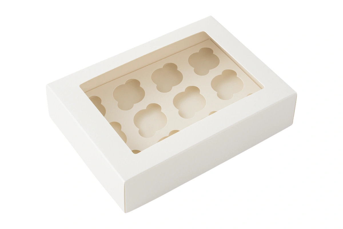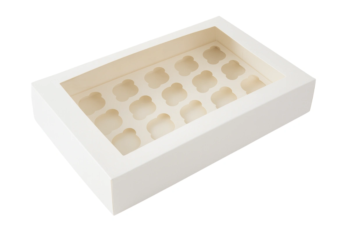 Designed with a secure white base, this mini cupcake box ensures safe transport and stylish presentation.