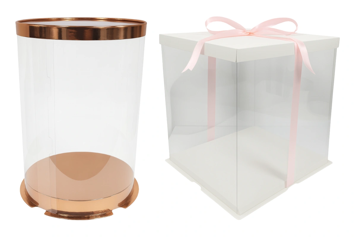 Crafted from clear, high-quality plastic, this box offers a crystal-clear view of the delectable treats within, allowing customers to admire the artistry of the cake.
